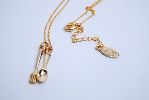 スプーンとフォークの形をした、オシャレ&ユニークなネックレスです。一味ちがったネックレスで