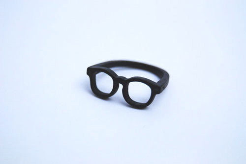 メガネの形をした、オシャレ&ユニークなリングです。一味ちがったリングで手元を演出