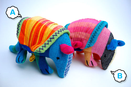 シマ模様のボディがとてもキュートなアルマジロのぬいぐるみです。