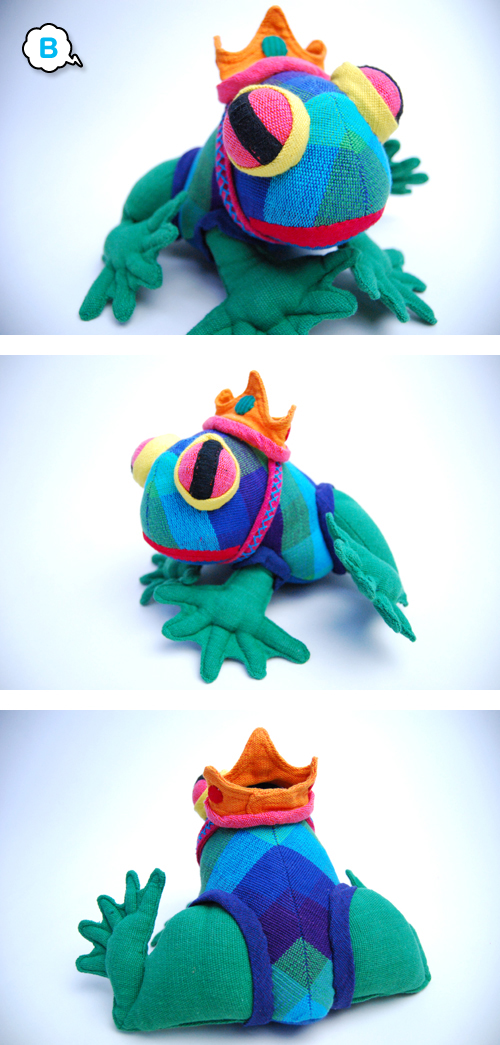 王冠を頭につけた貫禄のあるカエルのぬいぐるみ、クラウンです。