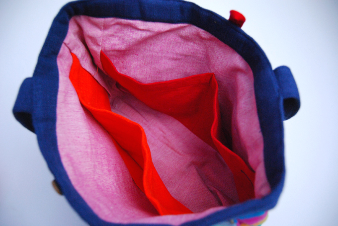 バッグの口はボタン1つでとめるようになっていますので、少し大きなものでも収納可能です。