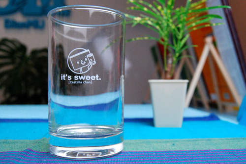 グラスにはジュースを飲み干すとカステラちゃんが顔を出す仕掛けになっています。