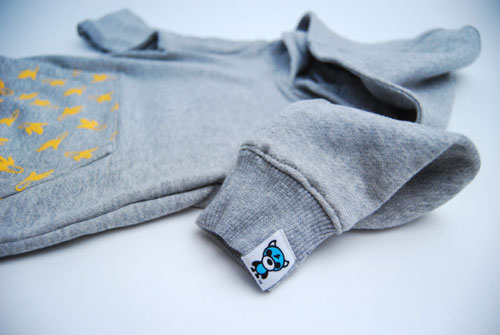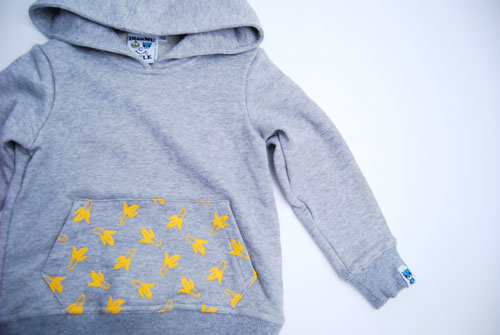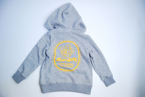 キッズパーカーになります。グレーのボディにイエローでプリントされた色合いもとても綺麗です。