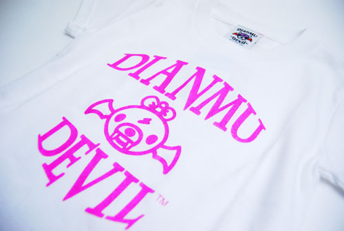 ビビットなピンク色のプリントが栄える、デビルディアンちゃんのTシャツです。