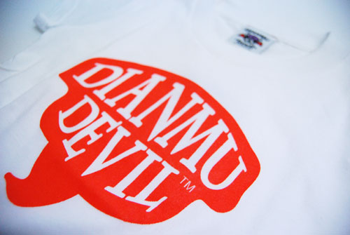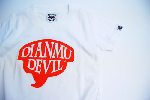 オレンジ色のプリントがとてもインパクトのあるDianMUDevilの吹きだしロゴTシャツです。