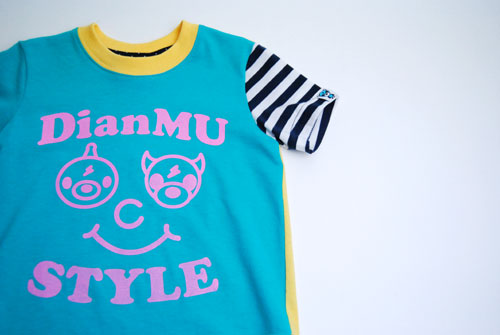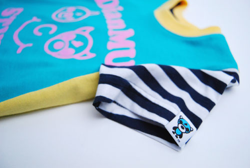 プリントカラーやボディ生地の色の切り替えしが特徴的で、カラフルな可愛いTシャツに仕上がりました。