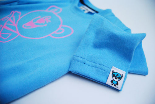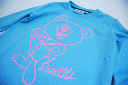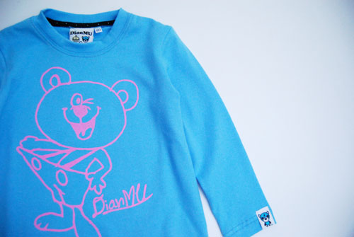 ズボンをピーン!と引っ張っているクマさんのイラストが可愛い長袖Tシャツになります。