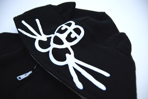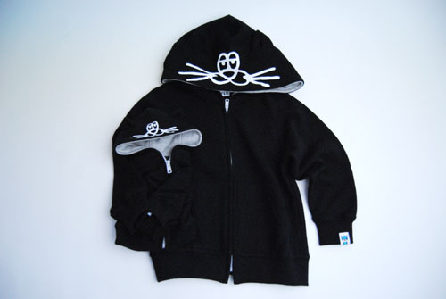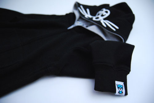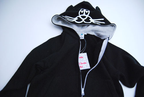 黒いボディの黒猫ちゃんですが、フードの内側とジッパーがグレーになっていて、