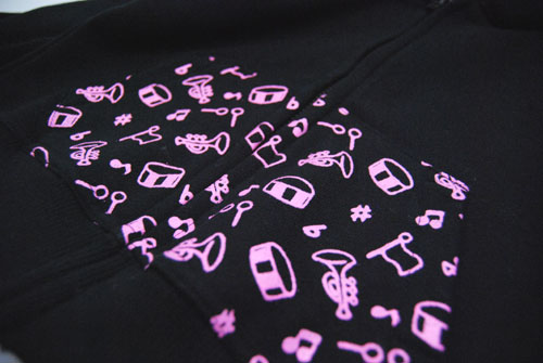 ポケット部分は音符の総柄になっています。ワンちゃんとのお揃いもご用意しております。
