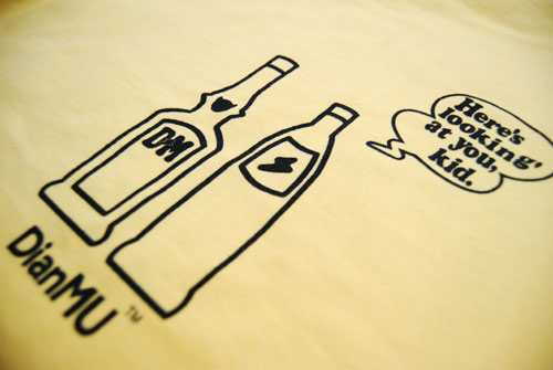 フロントには、逆さまにしたLIQUEURの文字。バックには、DianMUのリキュール瓶のイラスト